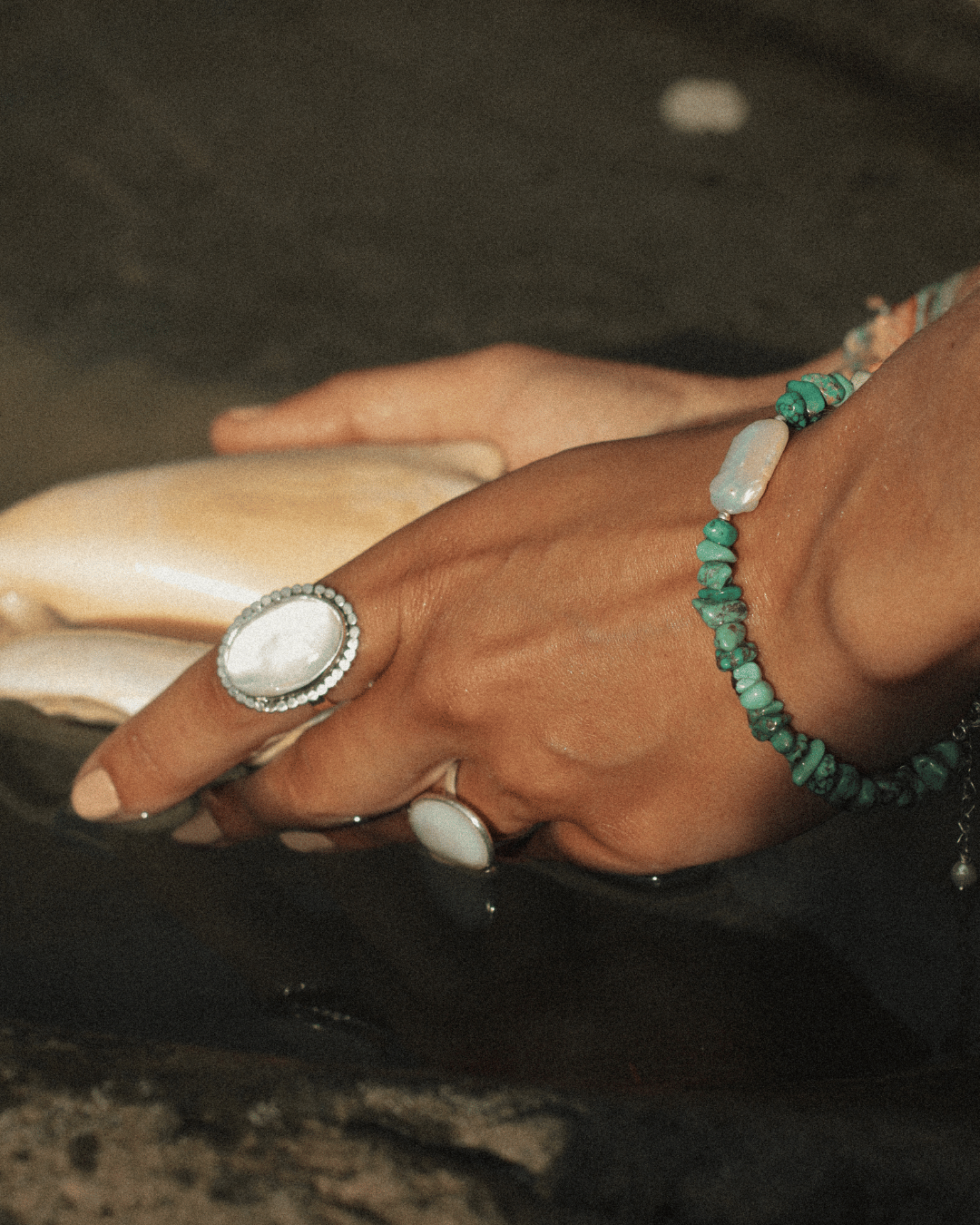 Ajustável, este anel combina o brilho suave da madrepérola com o detalhe da prata trabalhada ao redor da pedra. Uma joia única, que traduz delicadeza, feminilidade e atemporalidade, perfeita para acompanhar você em qualquer ocasião.